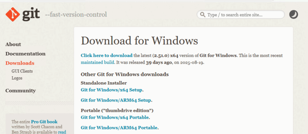 Or you can go to https://git-scm.com/downloads/win