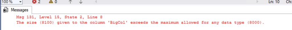BigCol CHAR(8100)  -- exceeds in-row limit